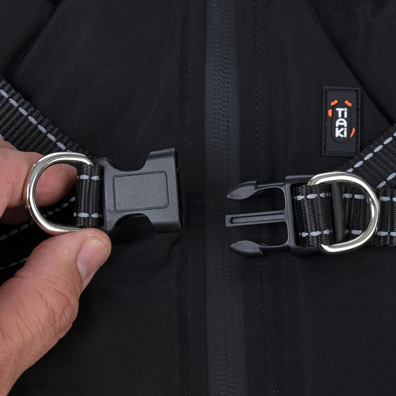 Fortunately, putting on the TIAKI Arkon Dog Coat with Harness – Black is a breeze, as your dog can effortlessly get its front legs into the designated openings in the coat. The zip and the simple click fastener of the harness do the rest.