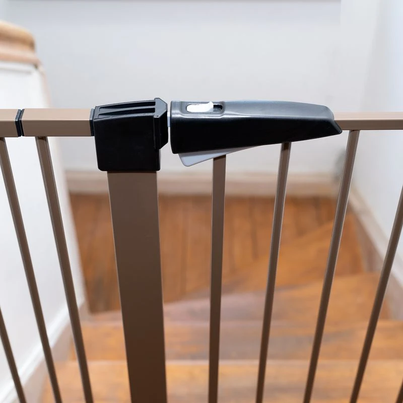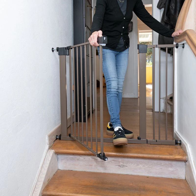 A special highlight of the TIAKI Dog Gate is the self-closing system, which ensures that the door closes automatically when you leave it out. The handle is fitted with a safety lock to prevent children or animals from accidentally opening the door. The door can be opened in both directions and can be widened by a total of 14cm using the two extension elements to adapt the grid to your needs.