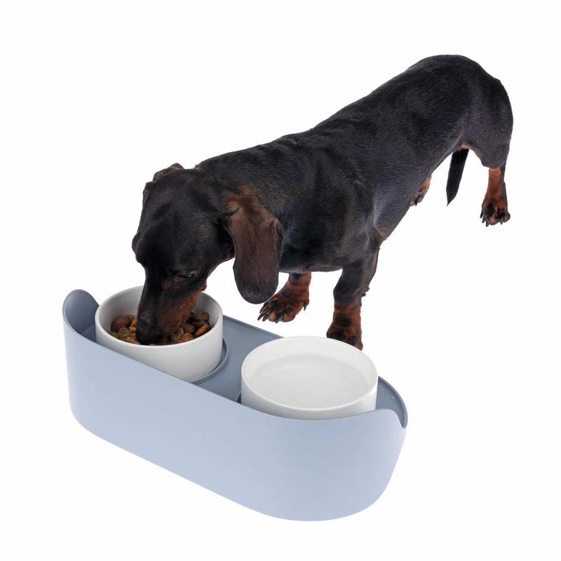 The tasteful ceramic food bowls ensure good hygiene at the feeding place and can easily be cleaned in the dishwasher . You can also clean the holder for the bowls with ease by simply wiping it with a damp cloth. The unagitated design and the stylish blue and white colouring give the TIAKI ceramic bowl duo a modern and beautiful touch.