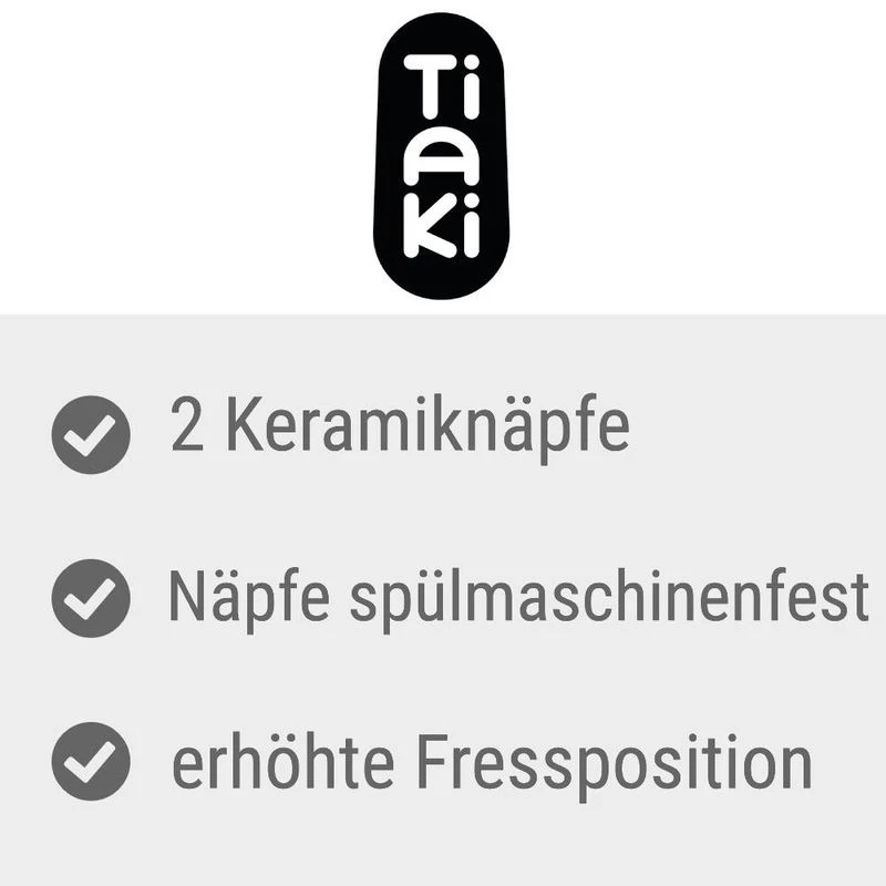 The TIAKI ceramic bowl duo offers your dog or cat a comfortable and easy-to-reach feeding place. The food bar is equipped with two bowls that are equally suitable for water, wet and dry food. Its elevated position allows even older pets to enjoy their meal comfortably and without contortions. At the same time, the construction does not slip away easily, because it has practical anti-slip feet.