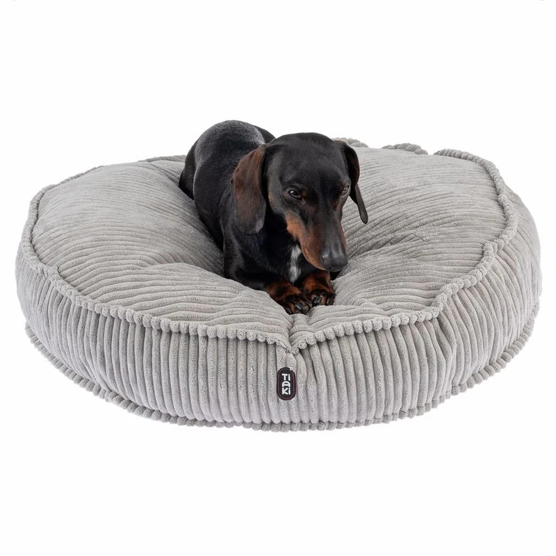 Corduroy is a material that feels particularly nice to the touch and creates a cosy atmosphere. The TIAKI Conner Cuddly Cushion for cats and small dogs is therefore covered with chic wide corduroy in a timeless shade of grey. The stylish TIAKI logo completes the whole thing to create a real eye-catcher that visually enriches your home!