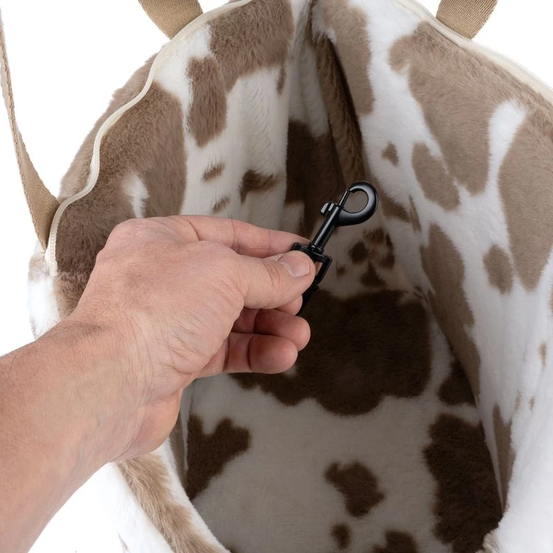 The TIAKI Cow Print Shoulder Carrier is not only a practical companion for you and your dog, but also a real eye-catcher. With its unique cow print look and cuddly plush fabric, it offers a cosy nest to snuggle up in while you’re out and about together.