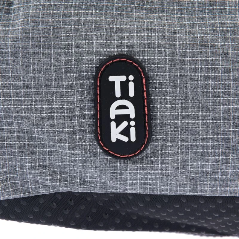 - Classic look: pretty, crossed, folded seam hems, subtle check pattern, stylish grey, with pretty TIAKI logo