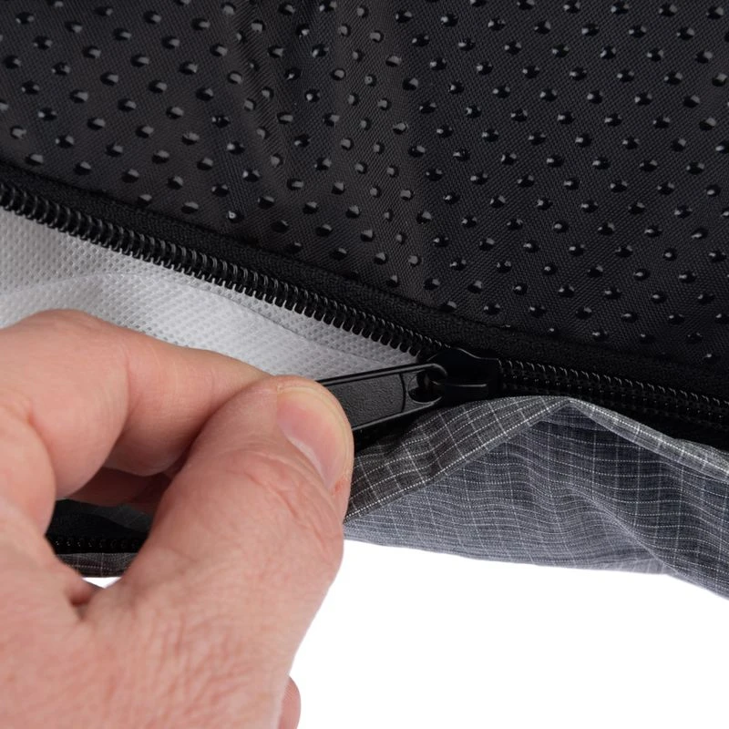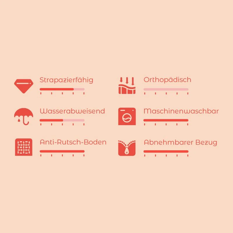 The sealed seams ensure that the cosy cushion is also water-resistant and can withstand the odd mishap. The timeless design in grey with the elaborate seams, the simple check pattern and the stylish TIAKI logo give the Abbey cuddly cushion that certain something. Thanks to the non-slip coating on the underside, it stays in place even on smooth floors.