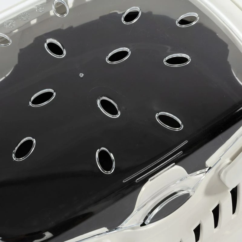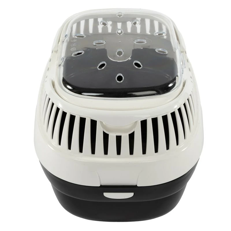The TIAKI Cutesie Transport Small Animal Carrier is perfect for transporting your small rabbit, ferret, guinea pig or chinchilla – whether safely to the vet or other short distances. The transport carrier is made of 100% recycled plastic, which makes it not only sustainable and environmentally friendly, but also durable and robust. Thanks to the many ventilation slots in the upper shell, an optimum supply of fresh air is always guaranteed. The transparent roof flap allows you to check the condition of your pet at any time without having to open the carrier.