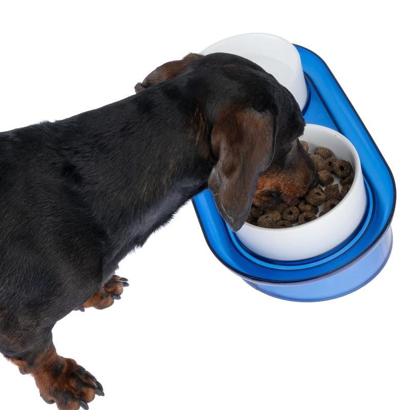 The raised design can help to protect your pet’s spine as it eats, as well as offering a more comfortable position to eat. The special design with double circle slots helps to hold the ceramic bowls securely in place, or lets you replace them with standard food cans if needed.