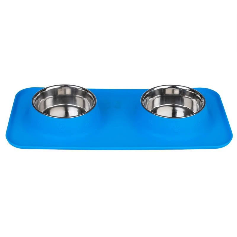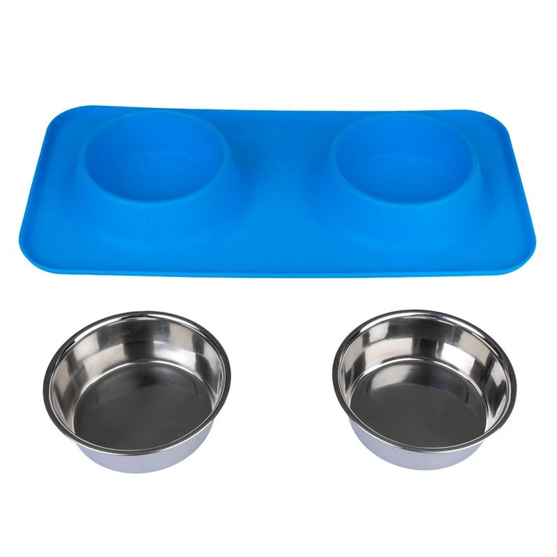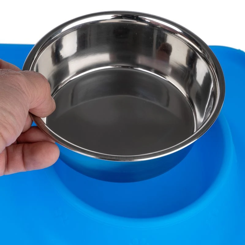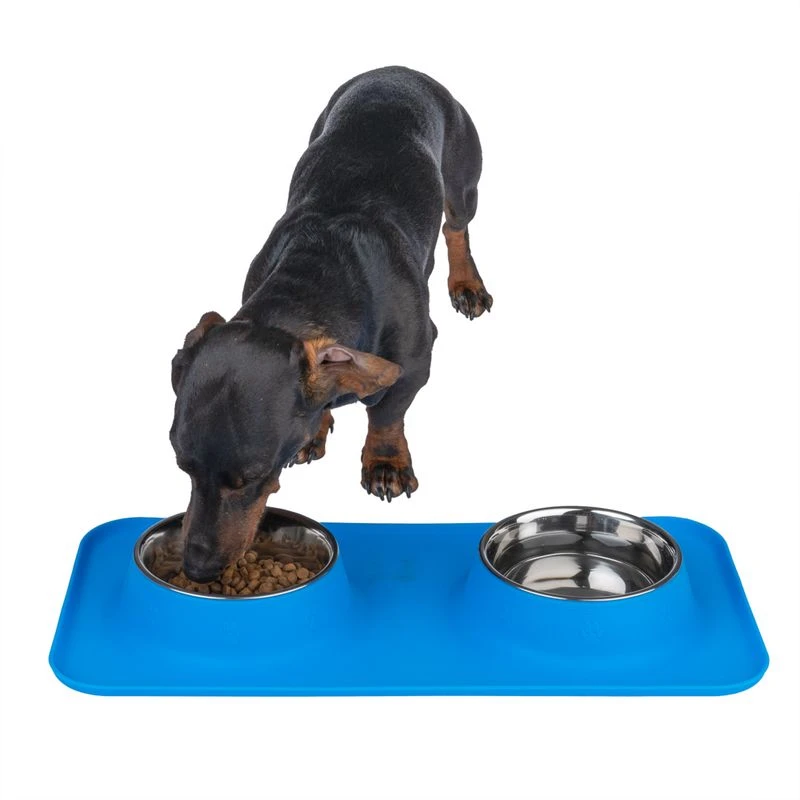 - Made of hygienic materials: stainless steel bowls, silicone mat