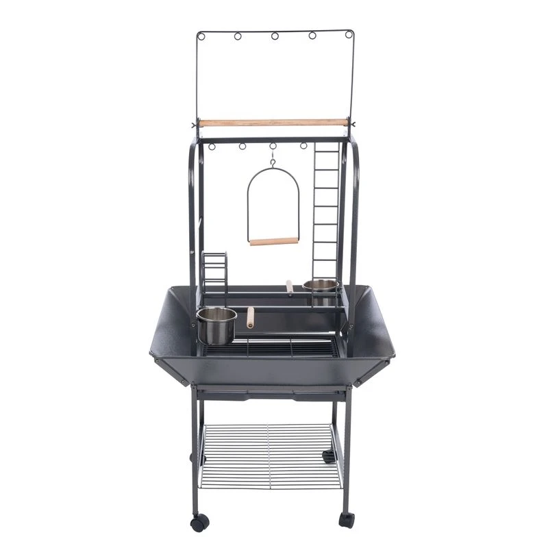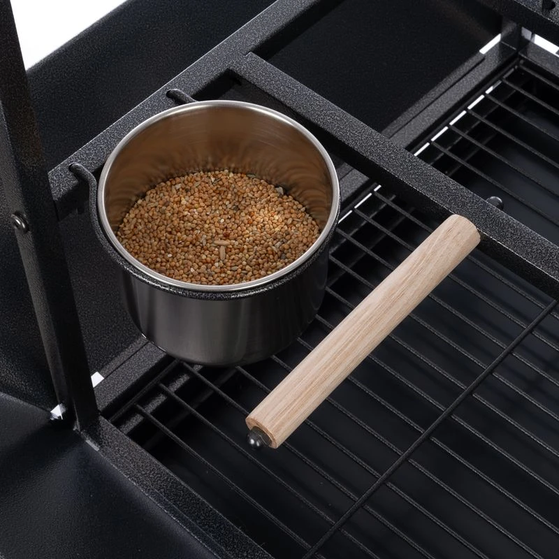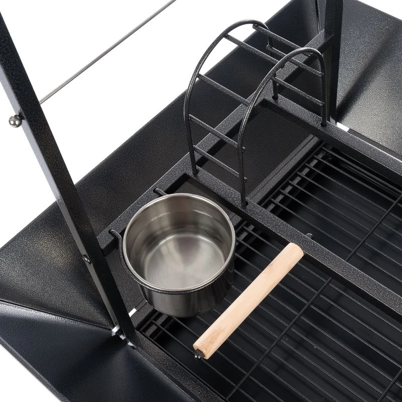 The TIAKI Free-Standing Perch for Parrots has a large storage space and is on easy-to-move wheels, allowing you to move it around as needed. A metal tray collects any fallen food and a plastic drawer makes it easier to clean.