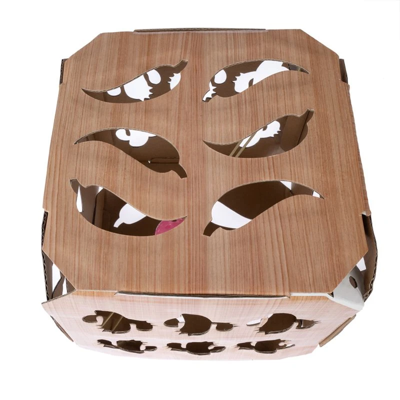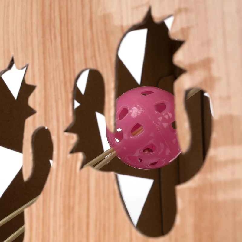The openings of the game box are creatively designed in the shape of cacti and chilli peppers, which makes the game even more exciting. The box is made entirely of cardboard and is easy to assemble thanks to a simple plug-in system. Your cat will love training its paw skills with the TIAKI Game Box with Ball, and have lots of fun in the process!