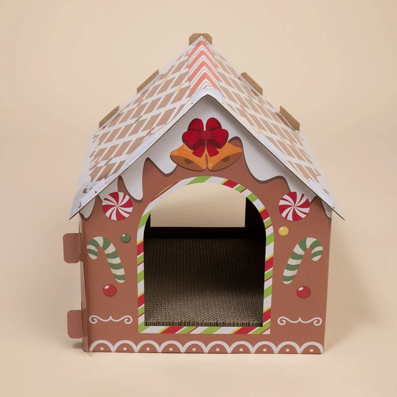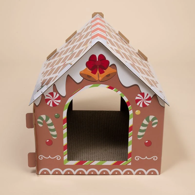 Highly practical, the TIAKI Gingerbread House for Cats can be easily folded up when required and stored away to save space. Inside there is a reversible scratching board made of corrugated cardboard, which helps your cat to keep its claws clean in a natural way. You can optionally sprinkle some catnip on top to pique your cat’s interest.