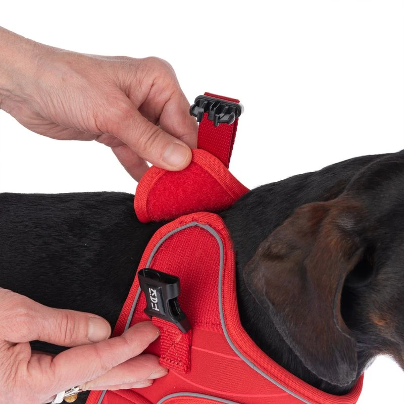 Putting on the dog harness is quick and easy, as all your dog has to do is step in with its front paws, close the click and Velcro fastener and you’re done!