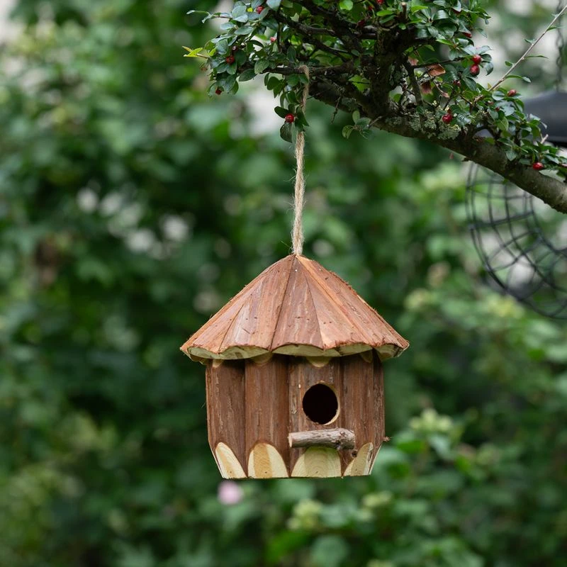 The protected interior of the TIAKI Log Cabin Nesting Box ensures that the birds feel safe and secure. A practical perch allows the birds to approach safely. The house is also made of untreated wood, making it a safe and natural retreat.