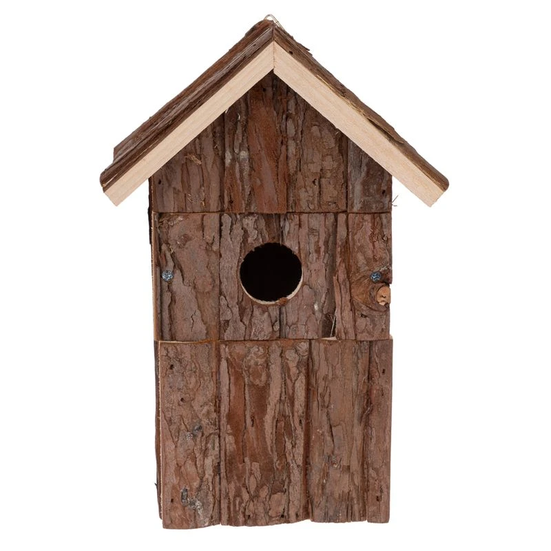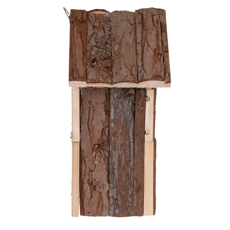 The TIAKI log cabin nesting box is the perfect home for your feathered friends, whether domesticated ornamental birds or wild birds. The nesting box is made of untreated real wood and has a natural bark structure that creates a familiar and cosy atmosphere for the birds. The use of real wood not only ensures robustness, but also harmonises with the surroundings of your garden or balcony.