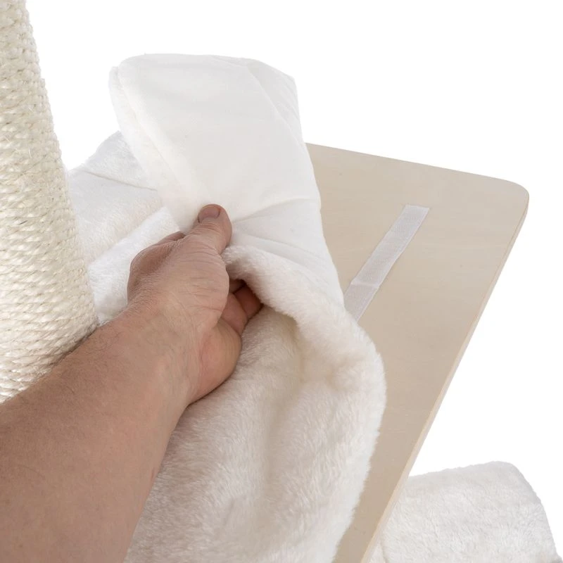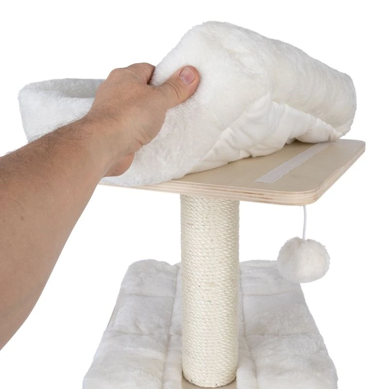 The great layout of the TIAKI Nova Cat Tree is perfect for encouraging your cat to climb, while the plush toy dangling from a string offers endless entertainment as it can be chased to their heart’s content! When it’s time for the next nap, your cat can retreat to the cosy cave on the ground floor. Thanks to its light appearance with cream-colored fabric elements, this cat furniture spreads a friendly and pleasant atmosphere