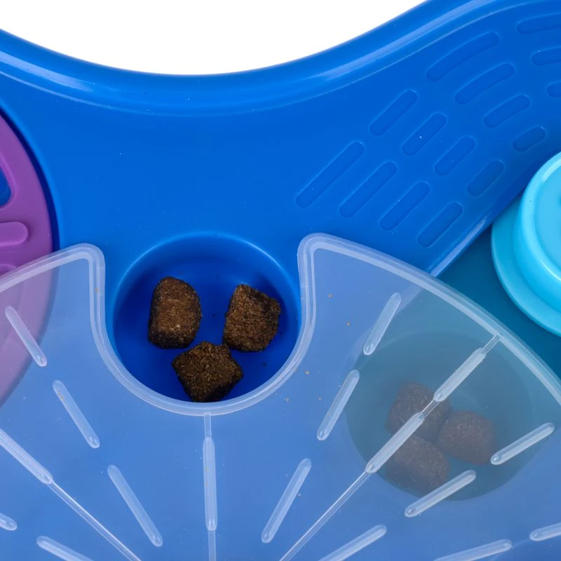 - A variety of challenges: numerous hiding places for treats or dry food