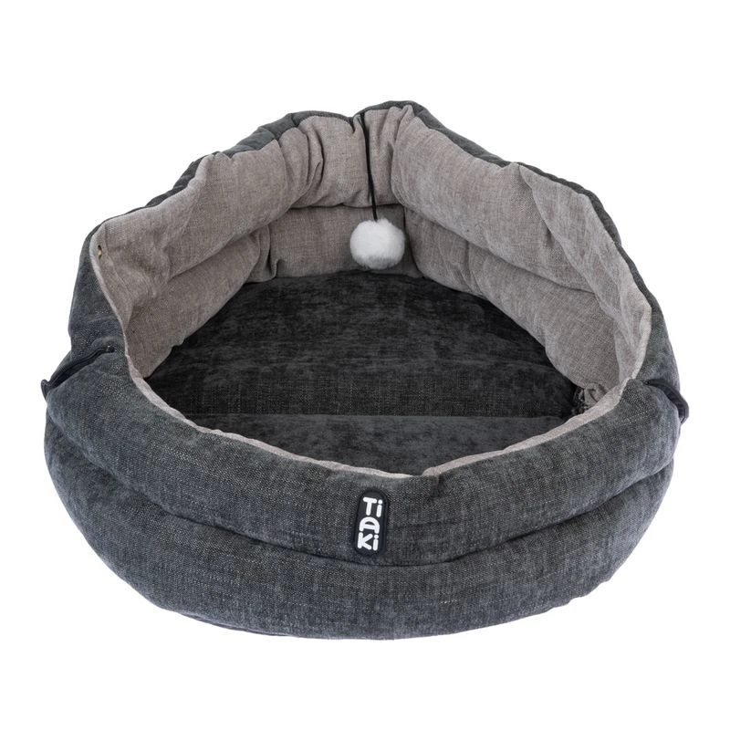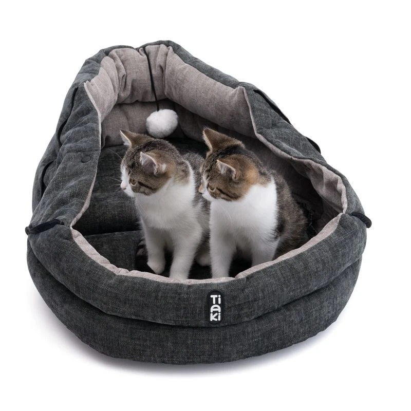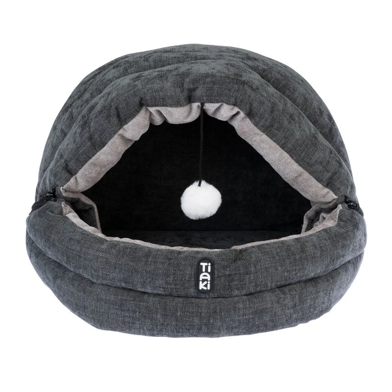 TIAKI Sami Cosy Cave is a super comfy bed for cats. When the zip is closed, it is a comfortable cave and when it is open, it transforms into an oval cuddly bed in which your cat can stretch out all four paws. This bed is multipurpose.