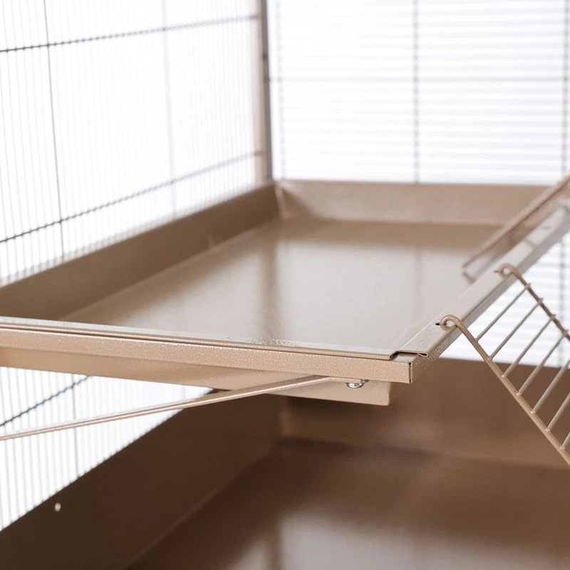 - Raised floor tray: for litter, keeps droppings inside
