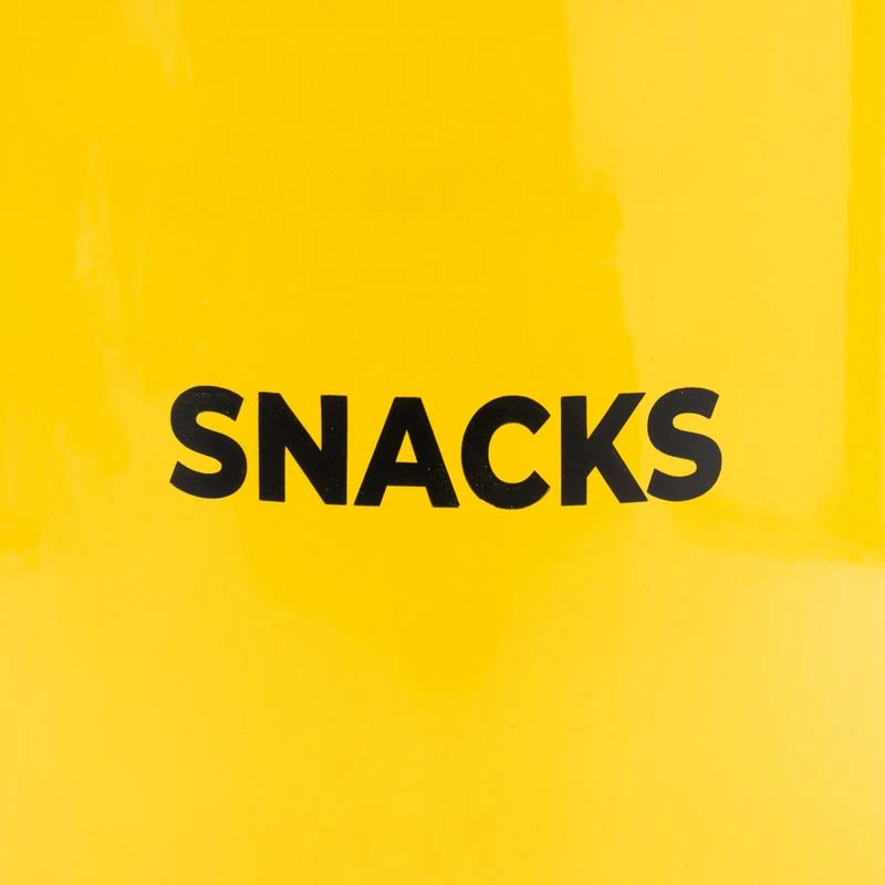 - In bright eye-catching yellow: highly-visible and stylish with the word “Snacks”
