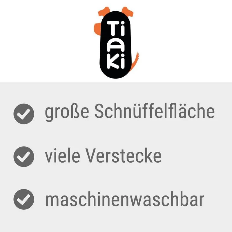 Spoil your beloved four-legged friend with the TIAKI sniffer mat and let him dive into a world full of discoveries and adventures! The many hiding places for treats and the combination of many different geometric shapes offer your four-legged friend an effective and exciting activity. The TIAKI sniffer mat can stimulate your dog’s sense of smell and mental development, helping to relieve boredom and stress.