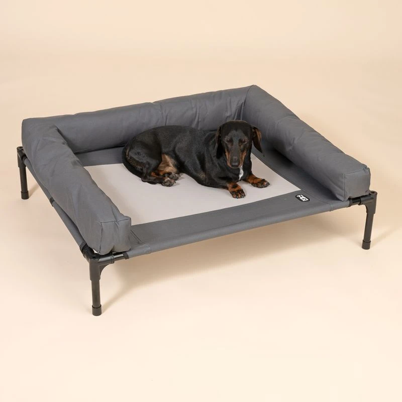 Comfortable sun lounger for dogs up to max. 50kg, raised lying surface made of flexible, breathable mesh material for cooling ventilation from below, suitable for outdoor use, 2 colours available