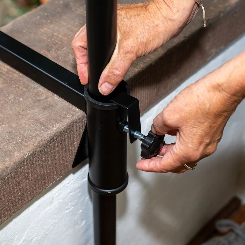 The TIAKI Wall Clamp for Telescopic Poles is the ideal solution for securely and firmly attaching telescopic poles for cat protection nets to a wall, half-wall, or stone railing. This allows your feline friend to safely explore the balcony and enjoy the outdoors without the risk of jumping or slipping off the railing.