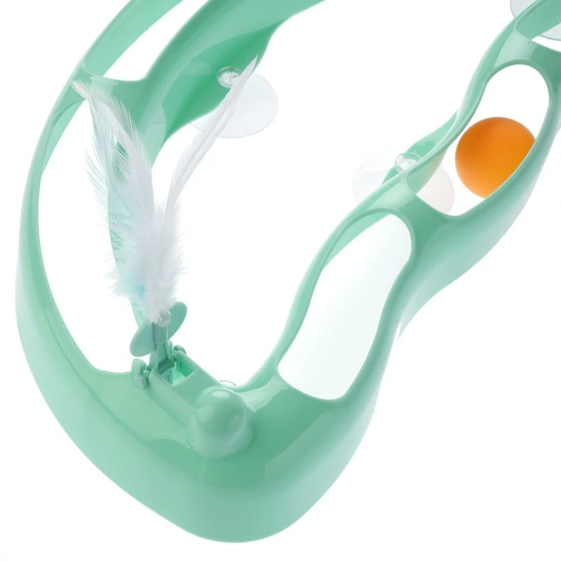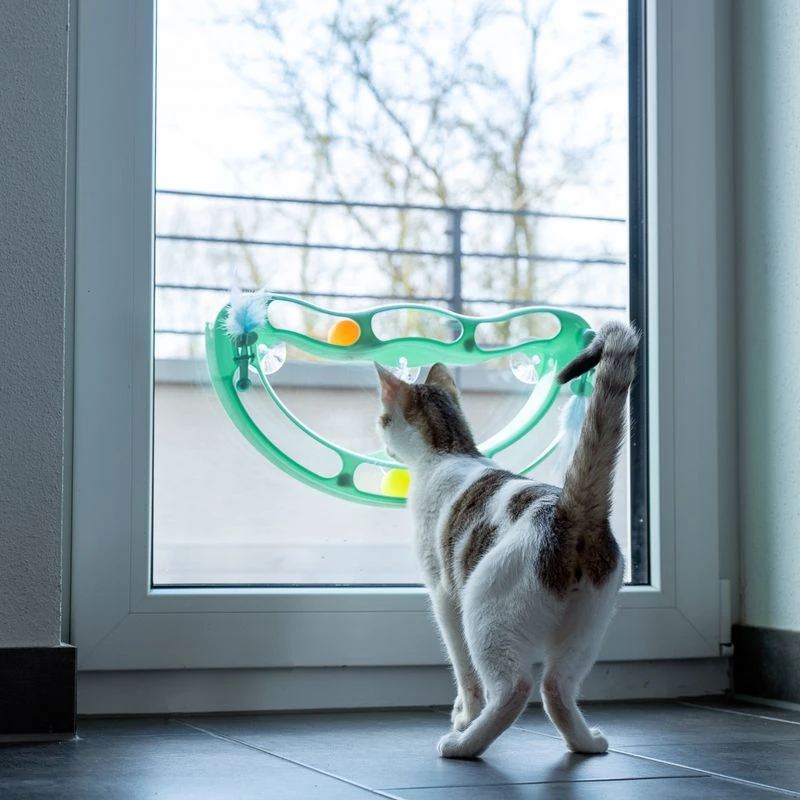 A special highlight of the TIAKI Wave Circuit Cat Toy are the two fun ball flippers with feathers. These encourage your cat to bump the balls and shoot them through the track. The four suction cups make it easy to attach the toy to windows and other smooth surfaces so that it remains stable and secure.